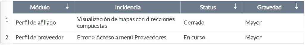 Incidencias y mejoras ya informadas